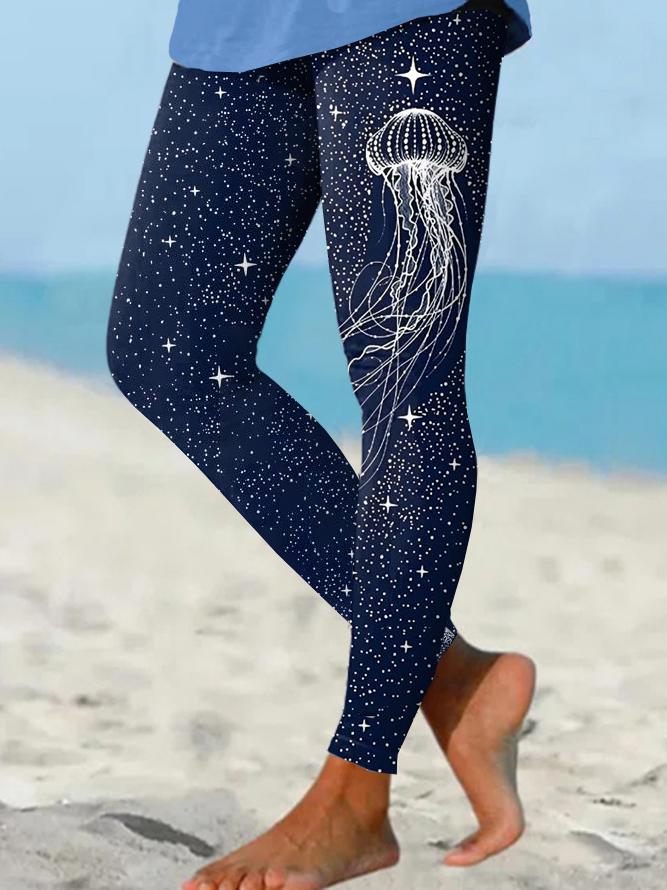 Women's Jellyfish Starry Night Art Print Casual Stretch Pants