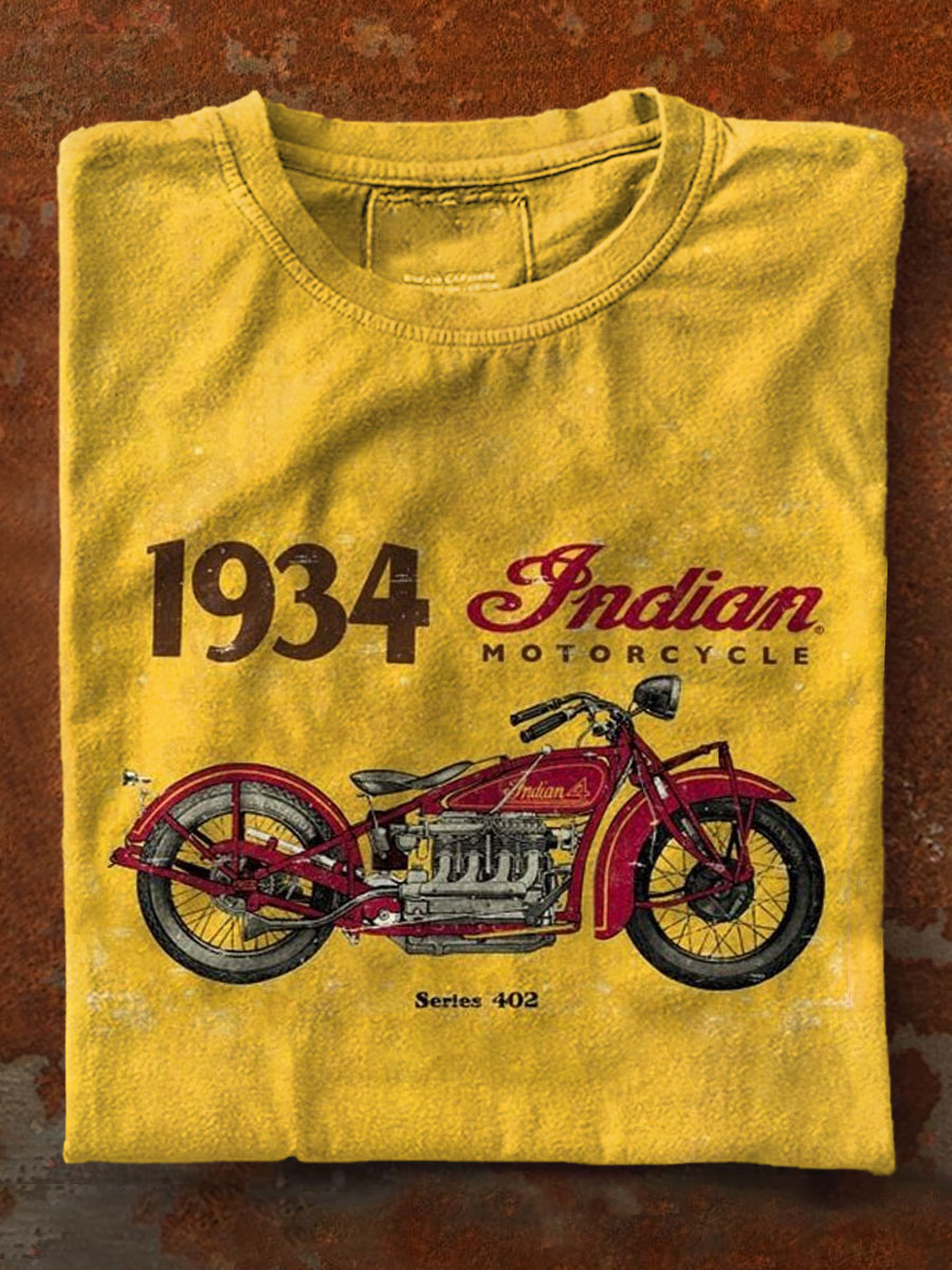 Vintage Motorcycle Art Print Casual Short Sleeve T-shirt
