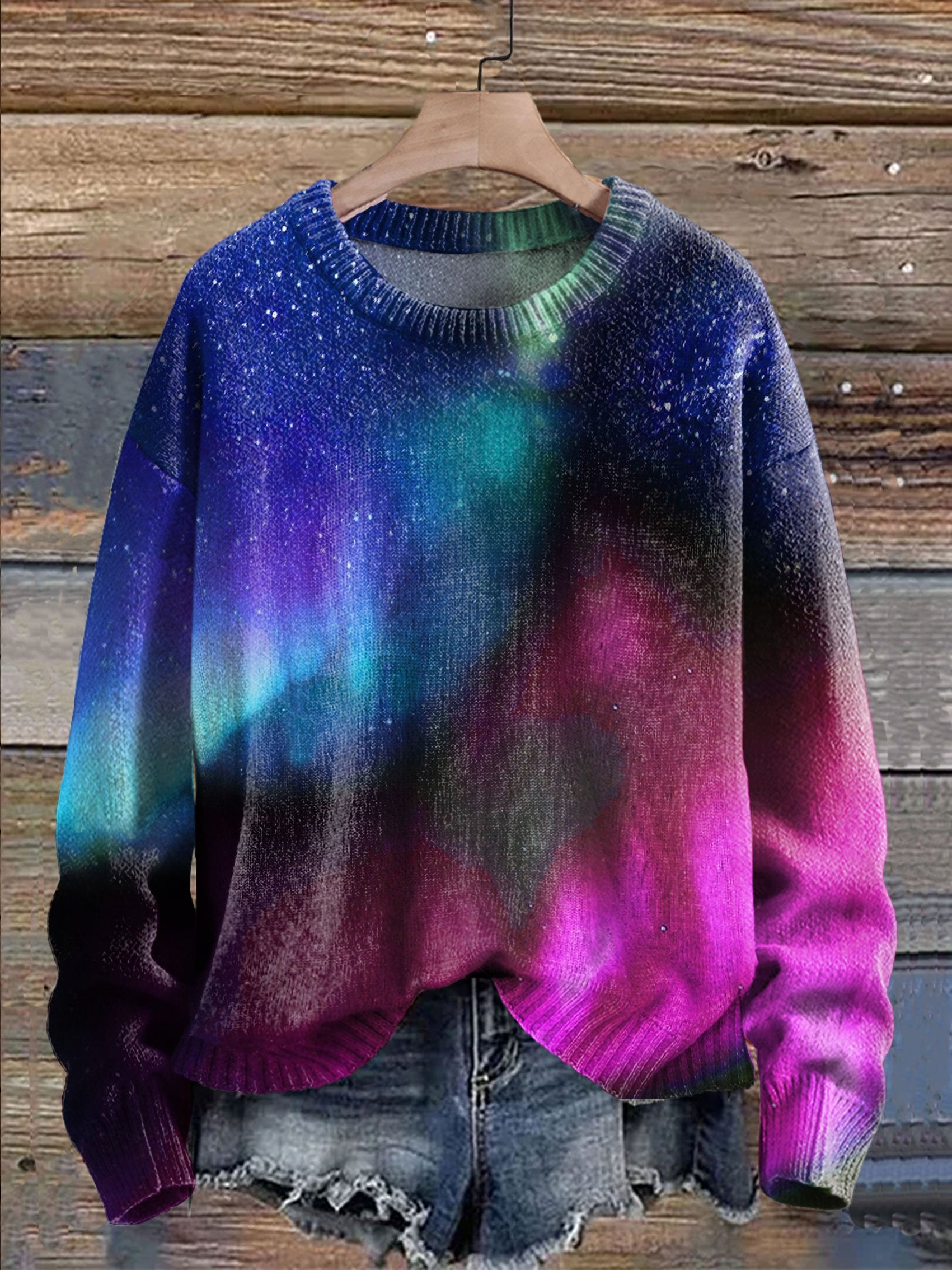 Aurora Northern Lights Print Knit Pullover Sweater