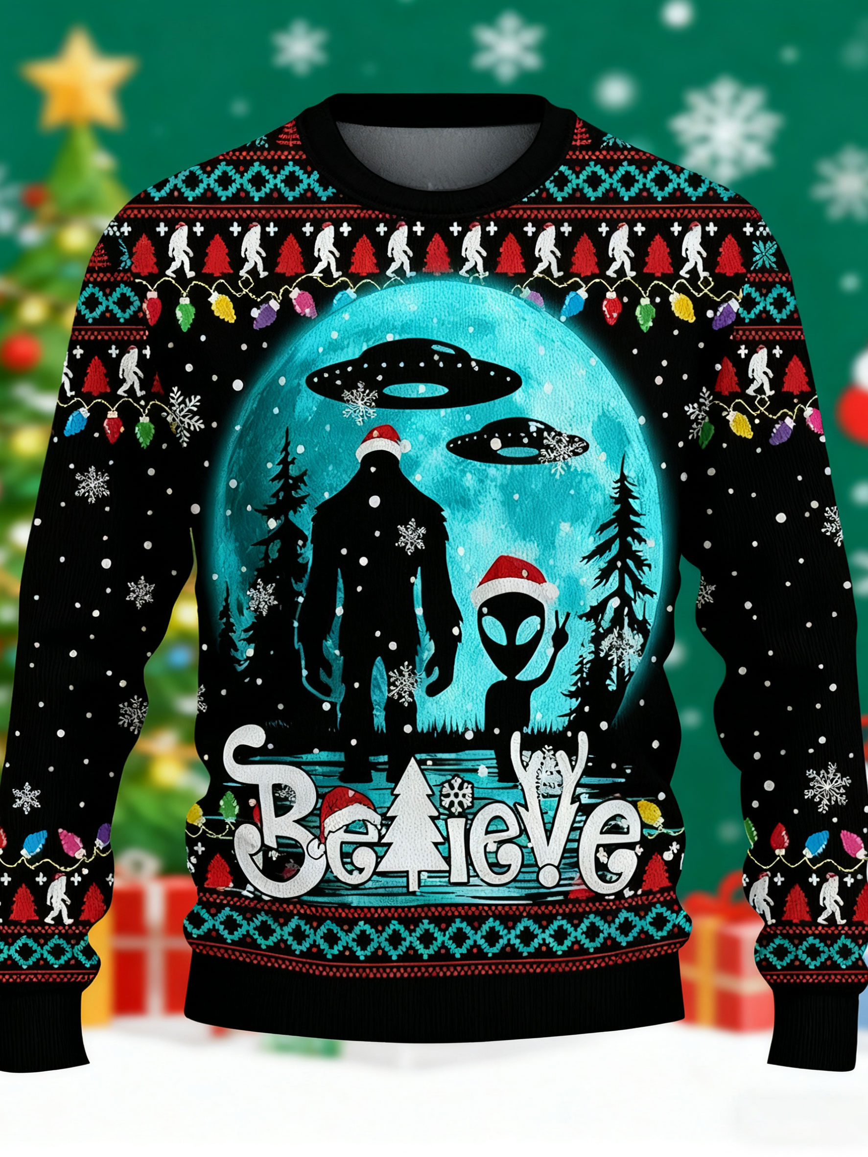 Bigfoot Ugly Christmas Art Print Casual Sweatshirt