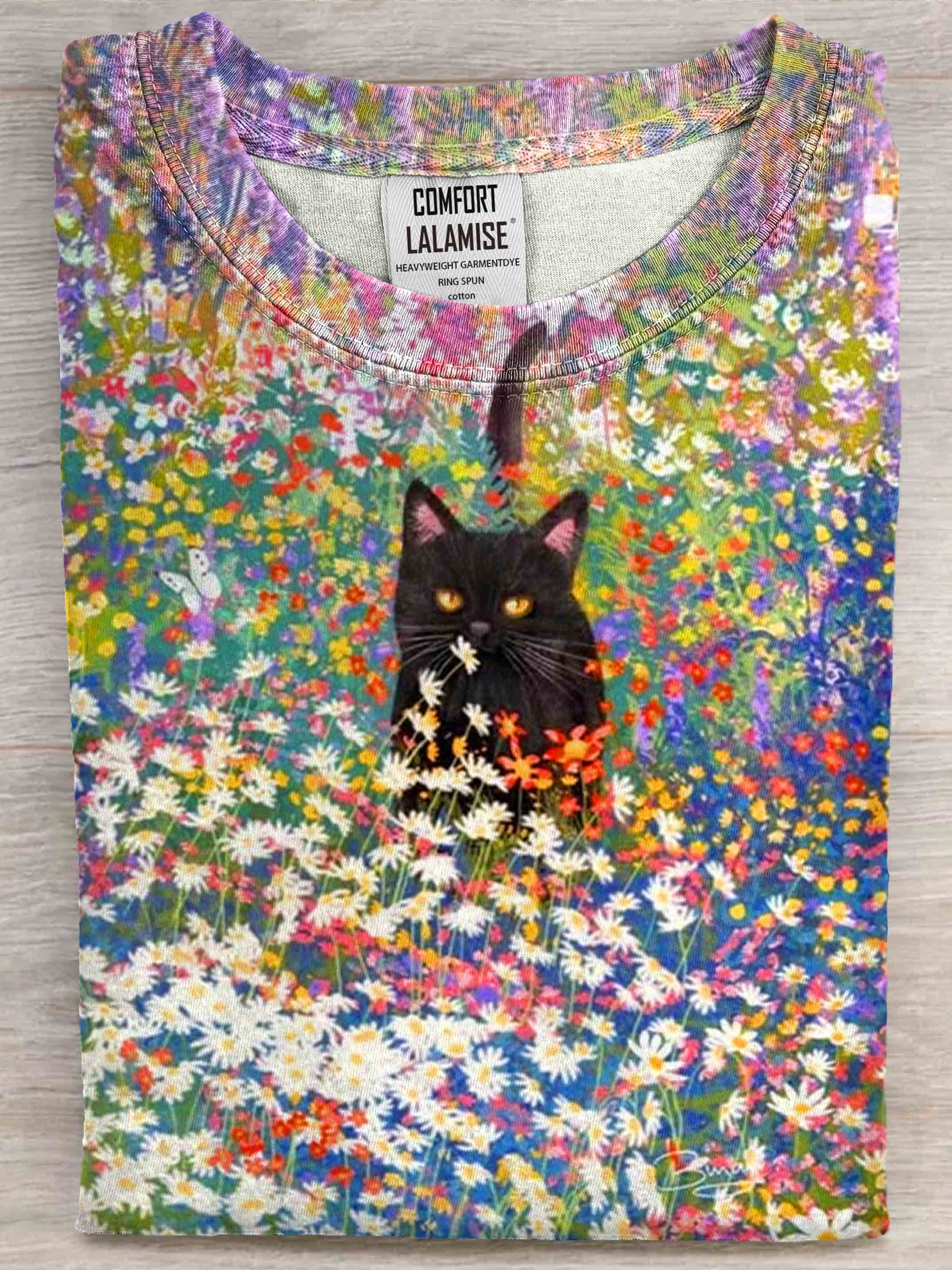 Black Cat Art Print Casual Short Sleeve T-shirt