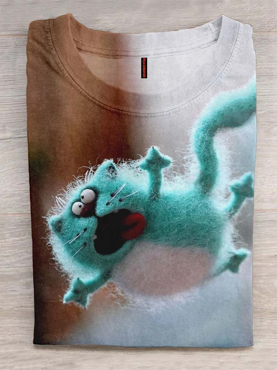 Blue Cat Doll Print T-Shirt