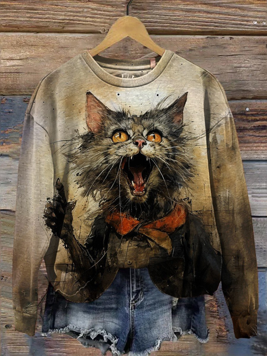 Cat Art Print Casual Sweatshirt