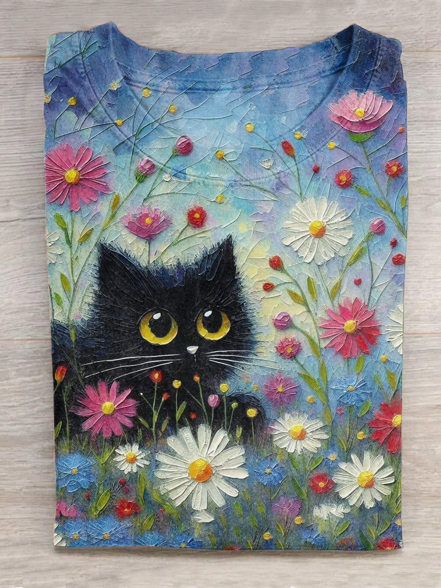 Cat Art Print Casual T-Shirt