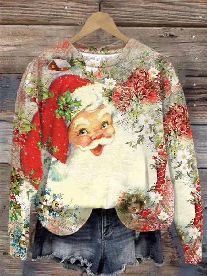 Christmas Cute Santa Flowers Art Print Casual Sweatshirt