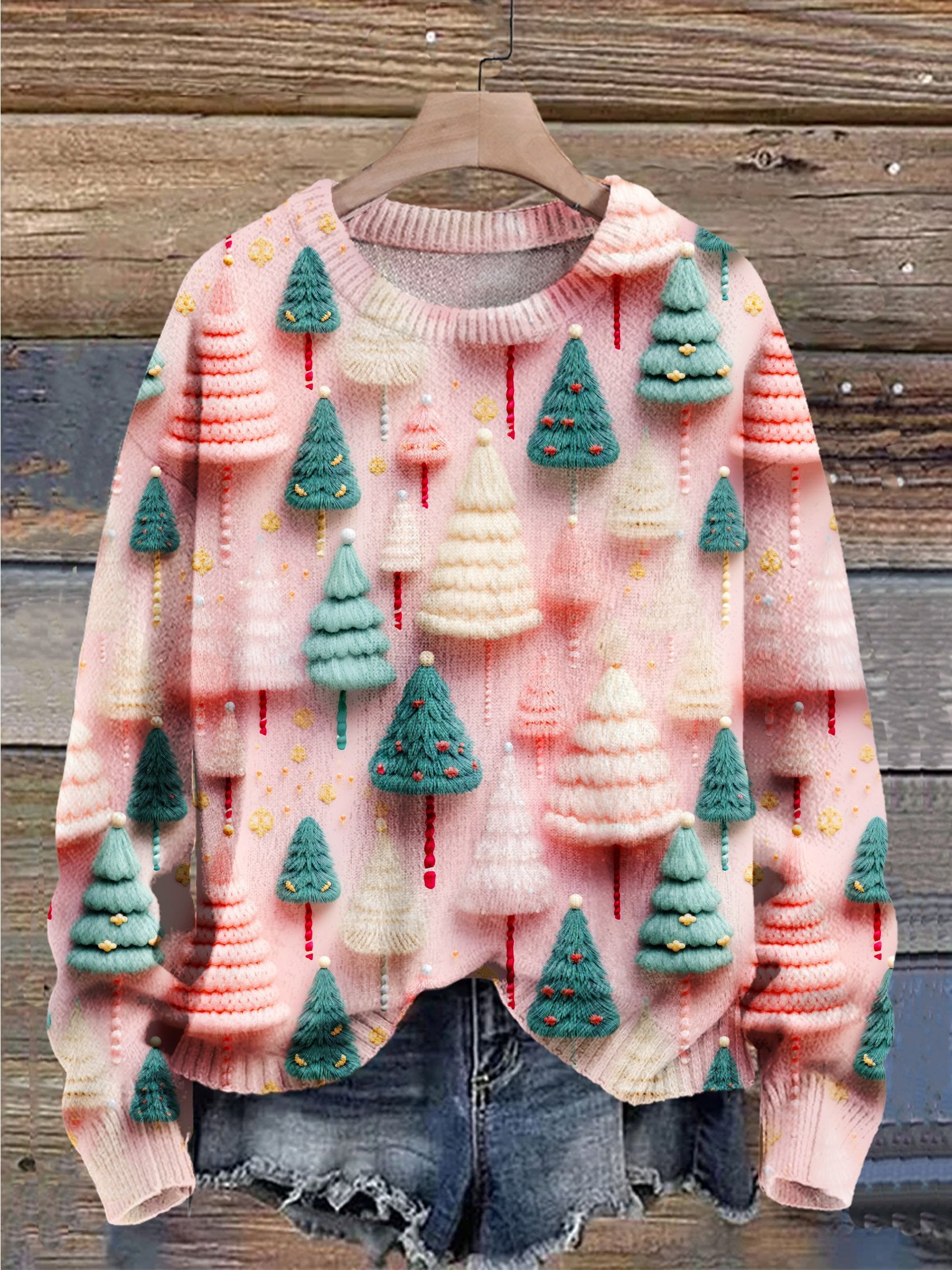 Christmas Gift Christmas Tree Art Print Knit Pullover Sweater