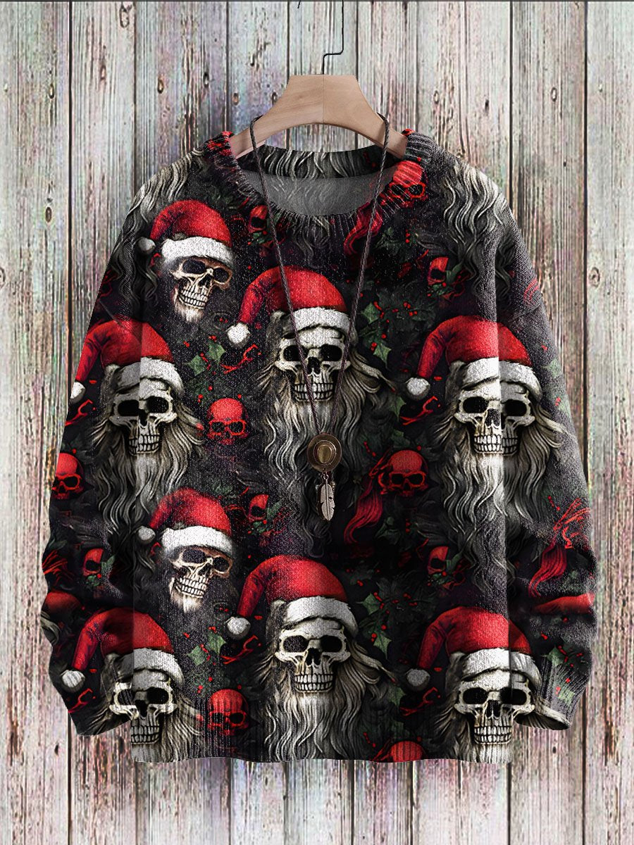 Christmas Horror Skeleton Art Pattern Print Casual Knit Pullover Sweater