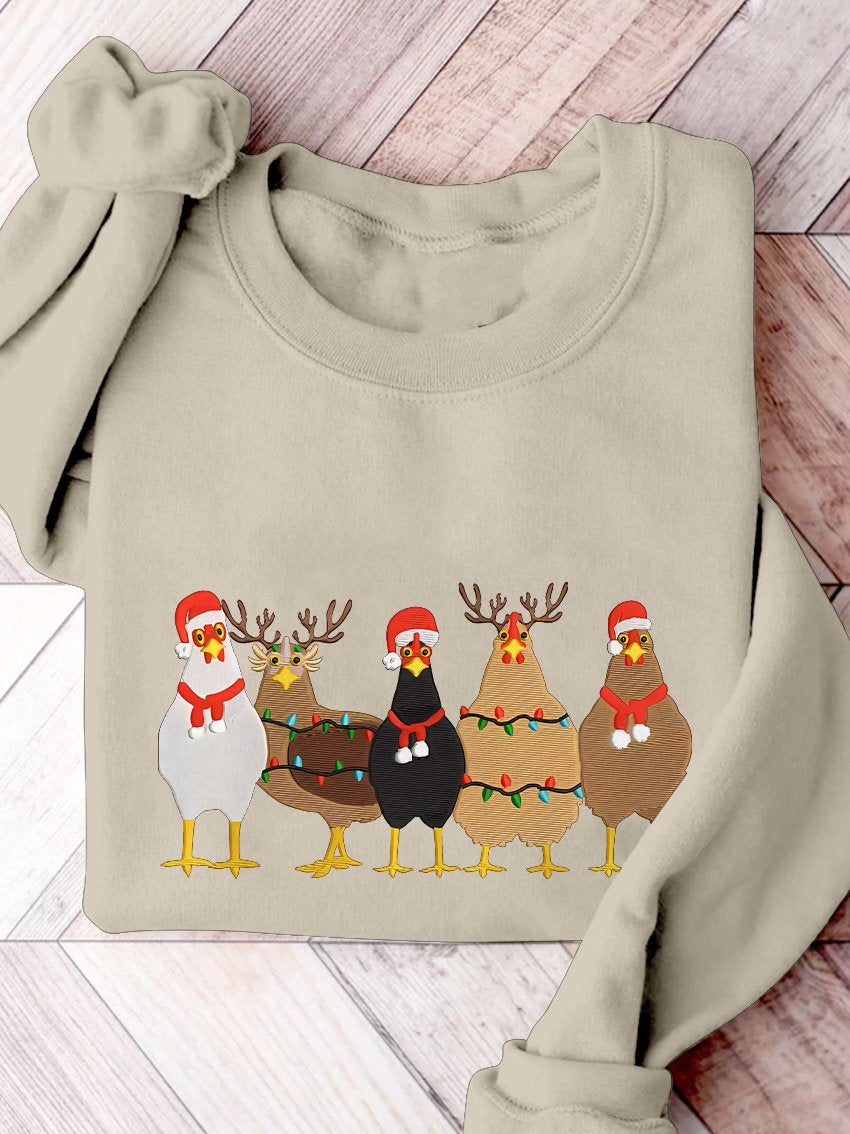 Christmas Lights Chicken Machine Print Casual Sweatshirt
