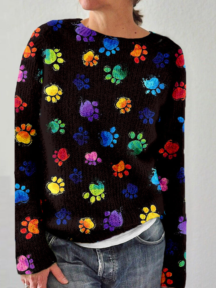 Colorful Dog Paws Graphic Cozy Sweater