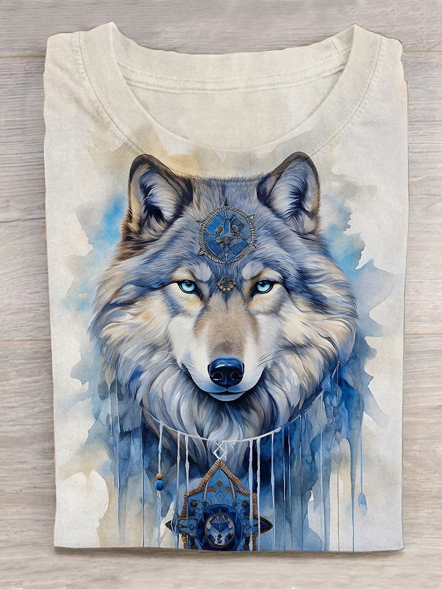 Cool Watercolor Wolf Art Print Casual T-Shirt