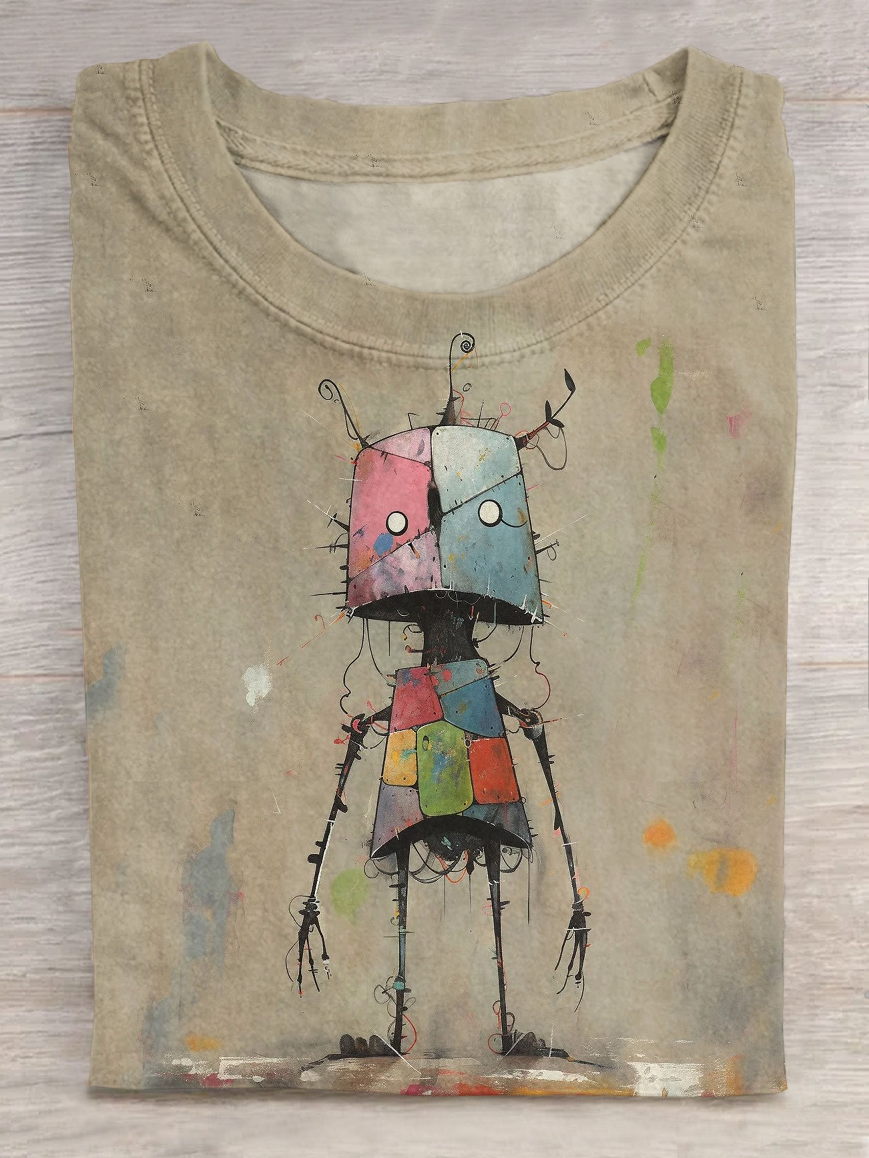 Cute Robots Art Printed Casaul Short Sleeve T-shirt