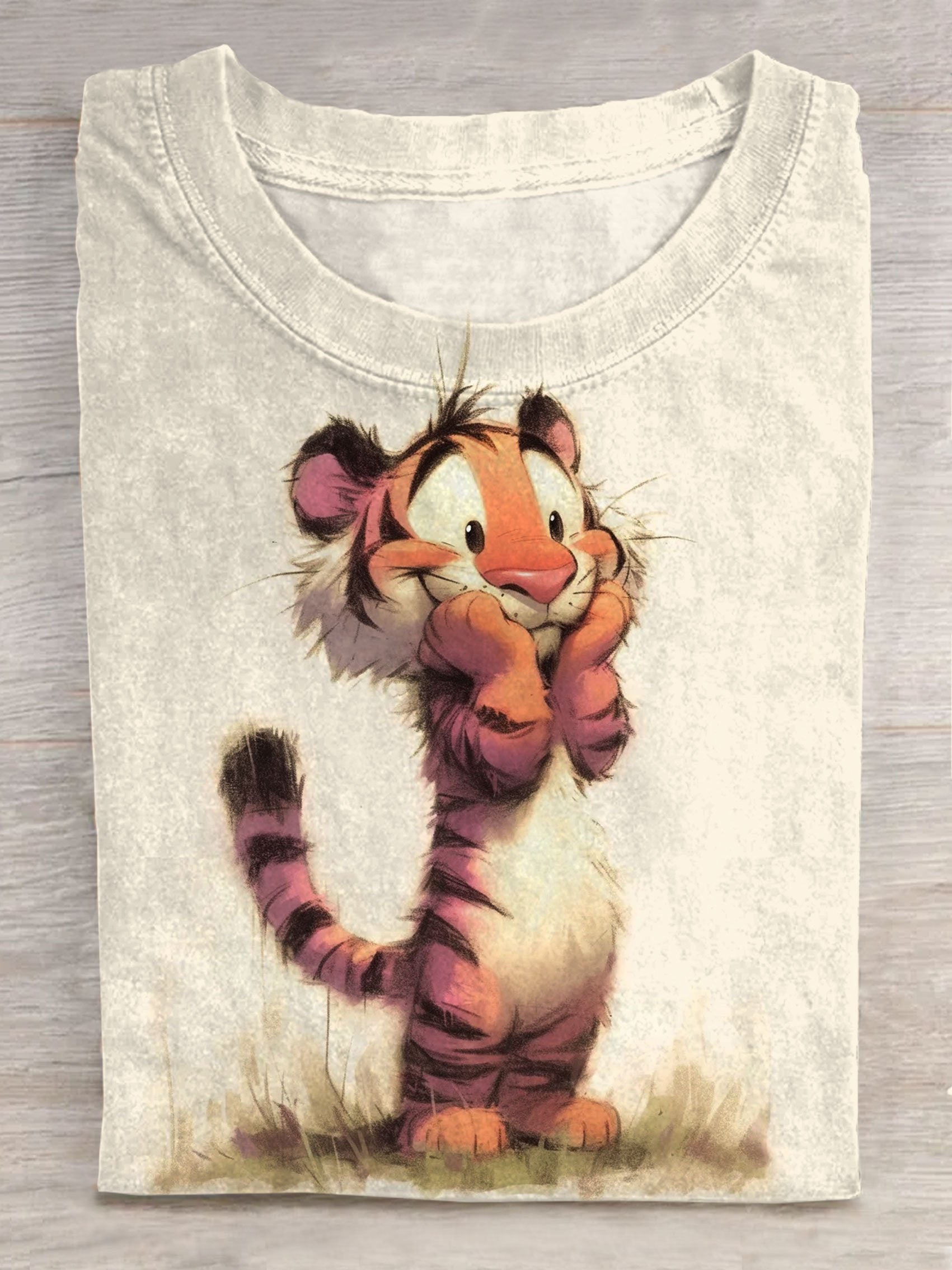 Cute TIger Art Print Short Sleeve Casual T-shirt