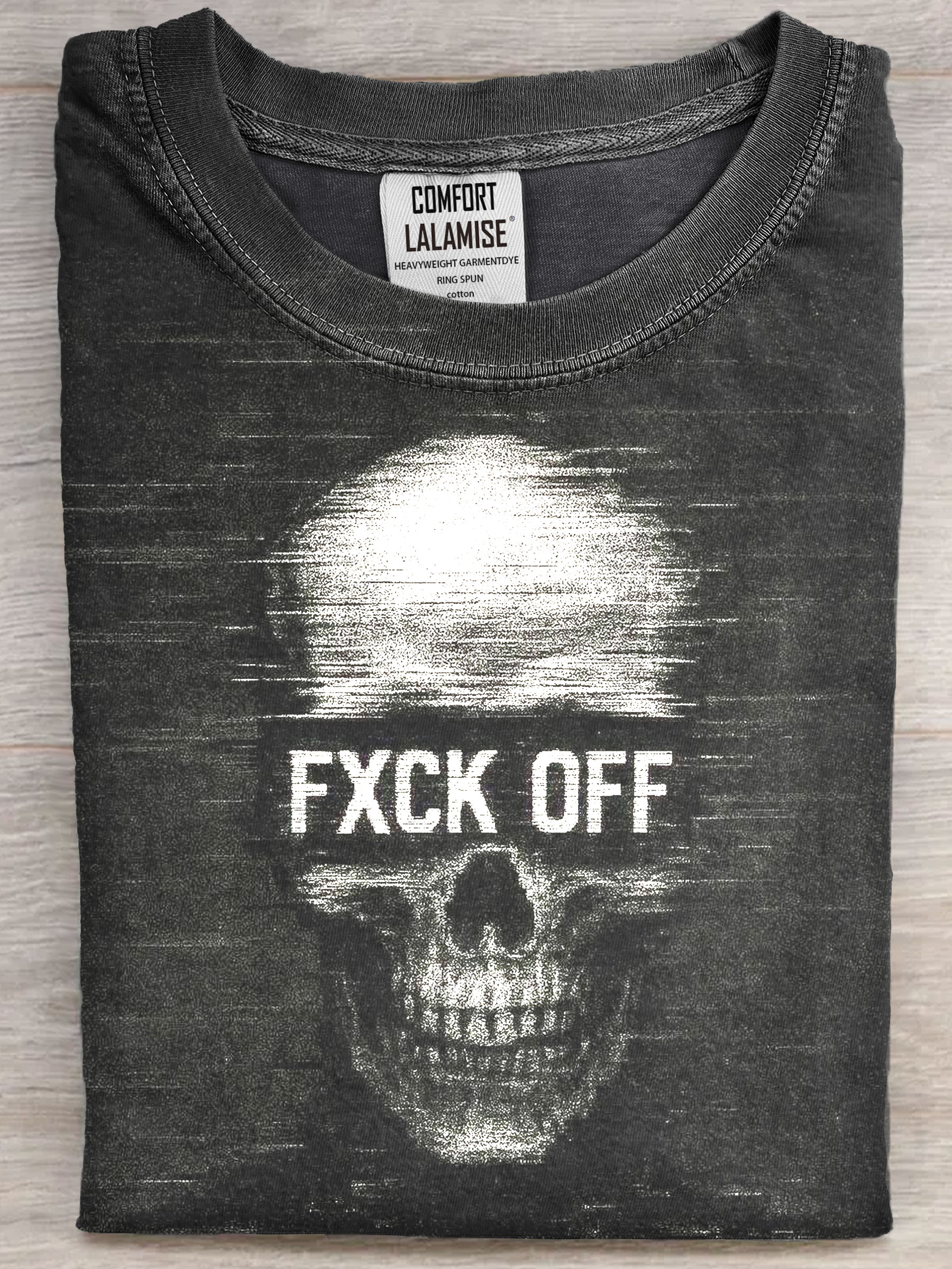 Fuck Off Skull Art Print Casual Short Sleeve T-shirt
