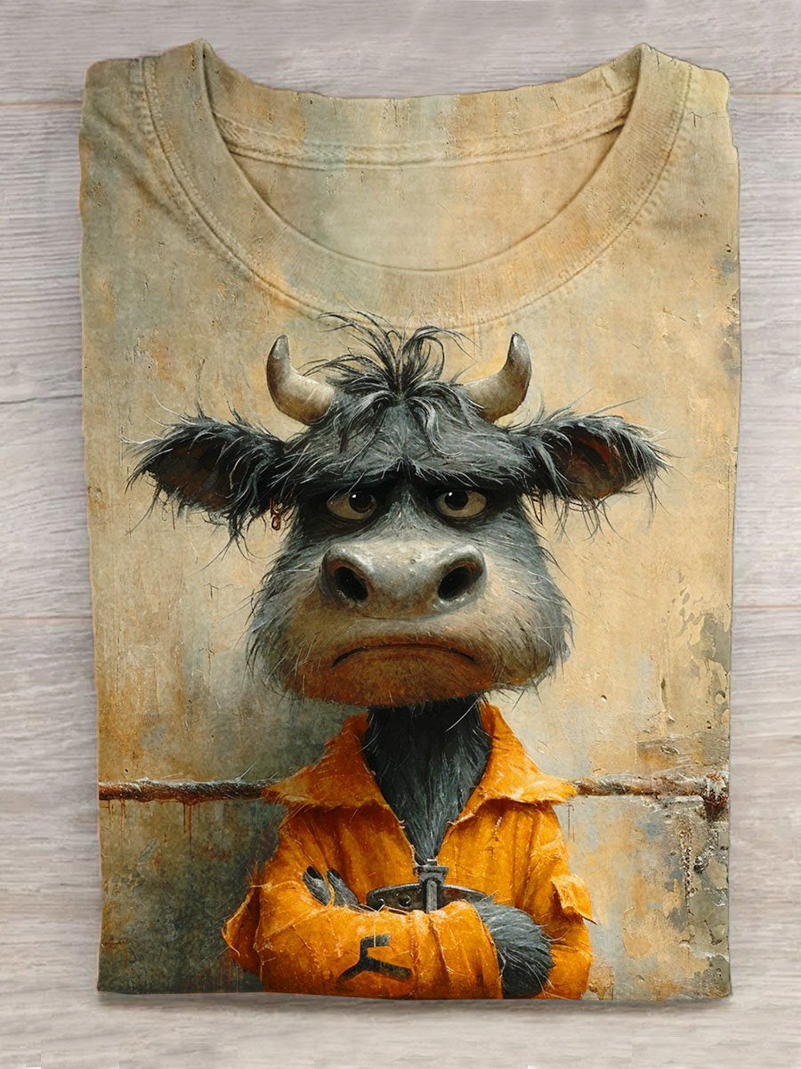 Funny Angry Cow Animal Art Print Design T-shirt