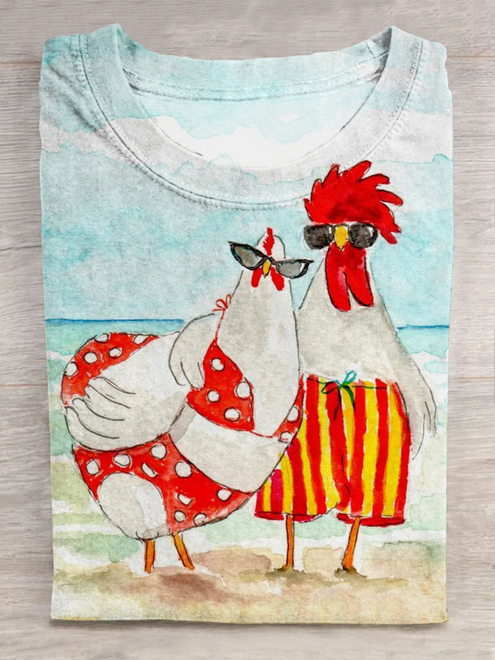 Funny Chicken Couple Vocation Art Print Casual T-Shirt
