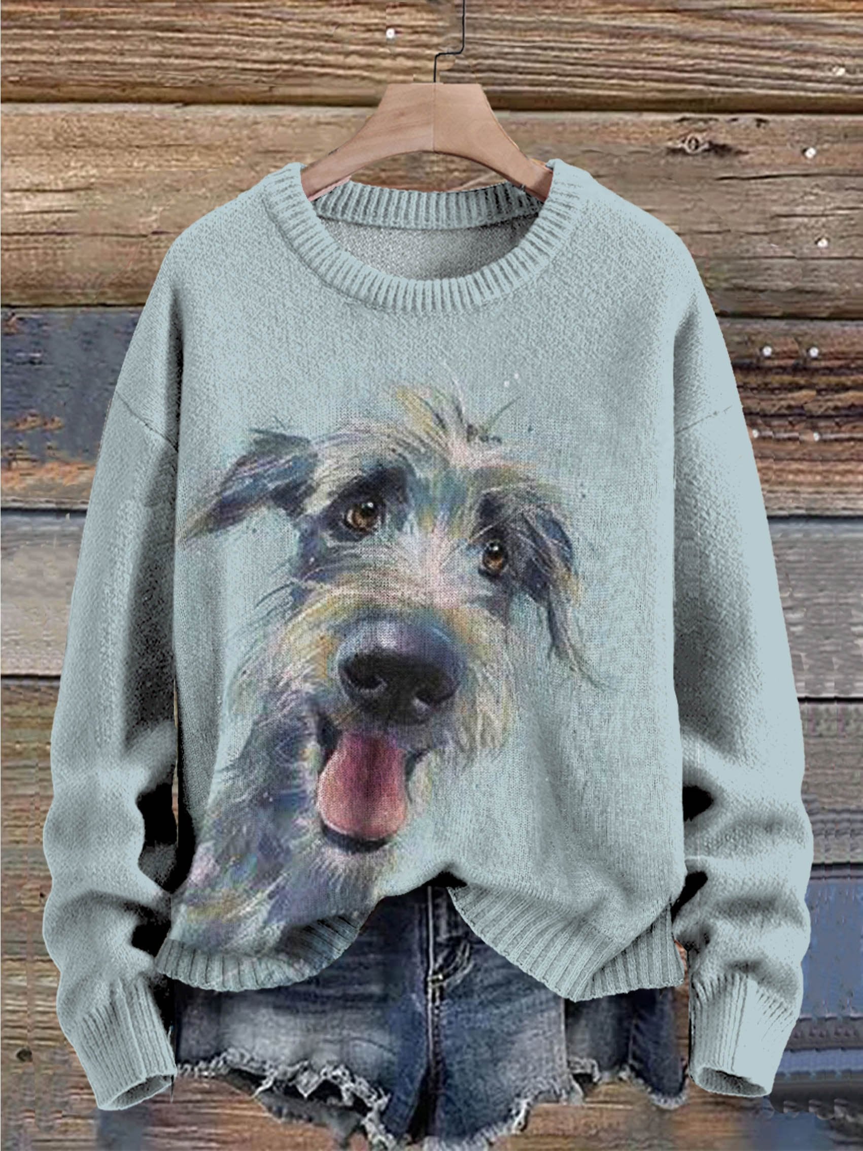 Funny Dog Art Pattern Print Casual Knit Pullover Sweater