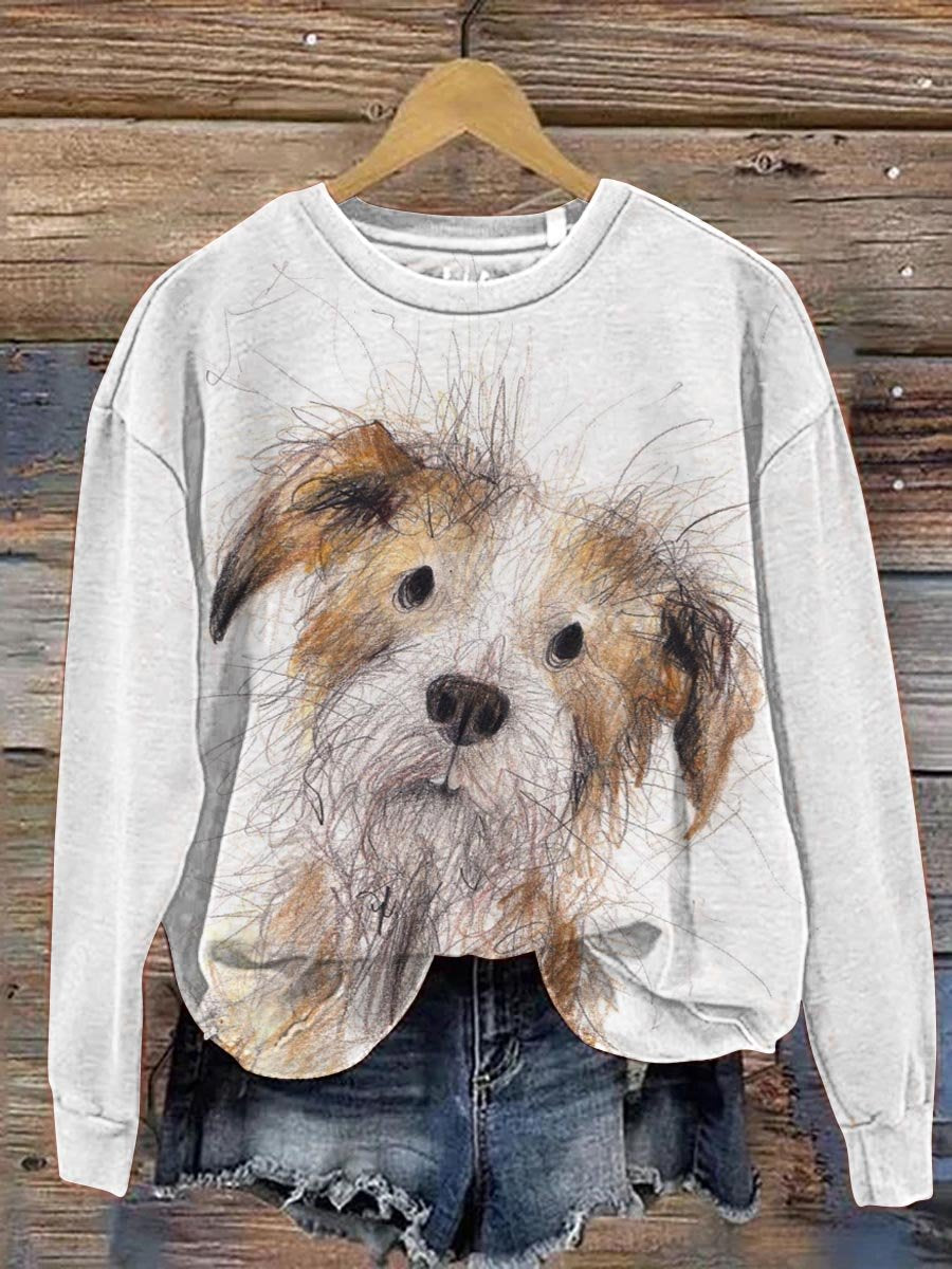 Funny Dog Portrait Art Pattern Print Casual Sweatshirt