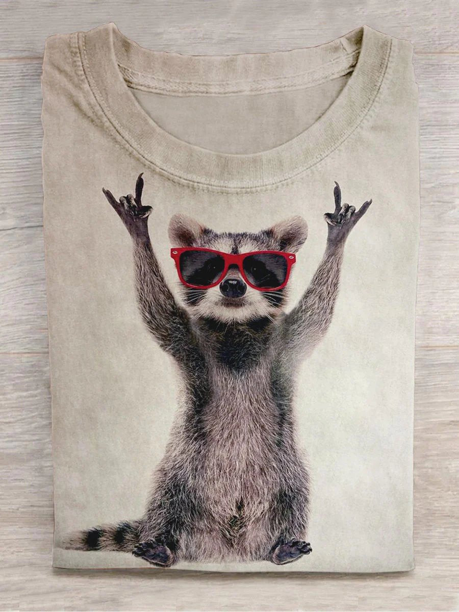 Funny Rock Raccoon Art Pattern Print Casual T-shirt