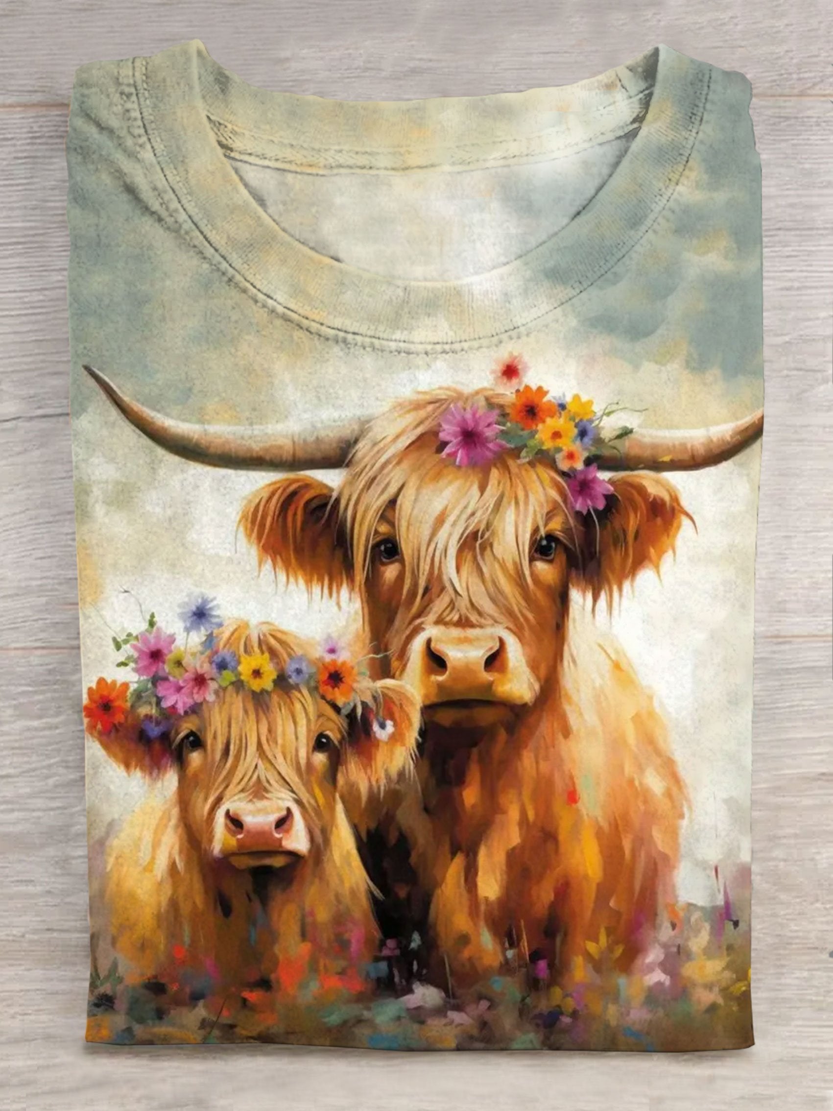 Haired Cow Art Graphic Printed T-shirt