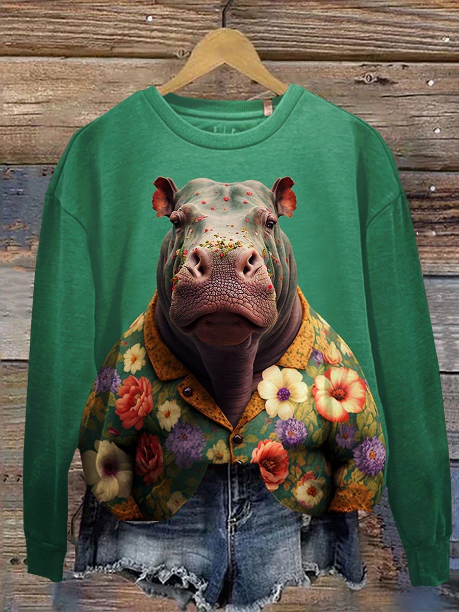 Hippopotamus Art Print Casual Sweatshirt