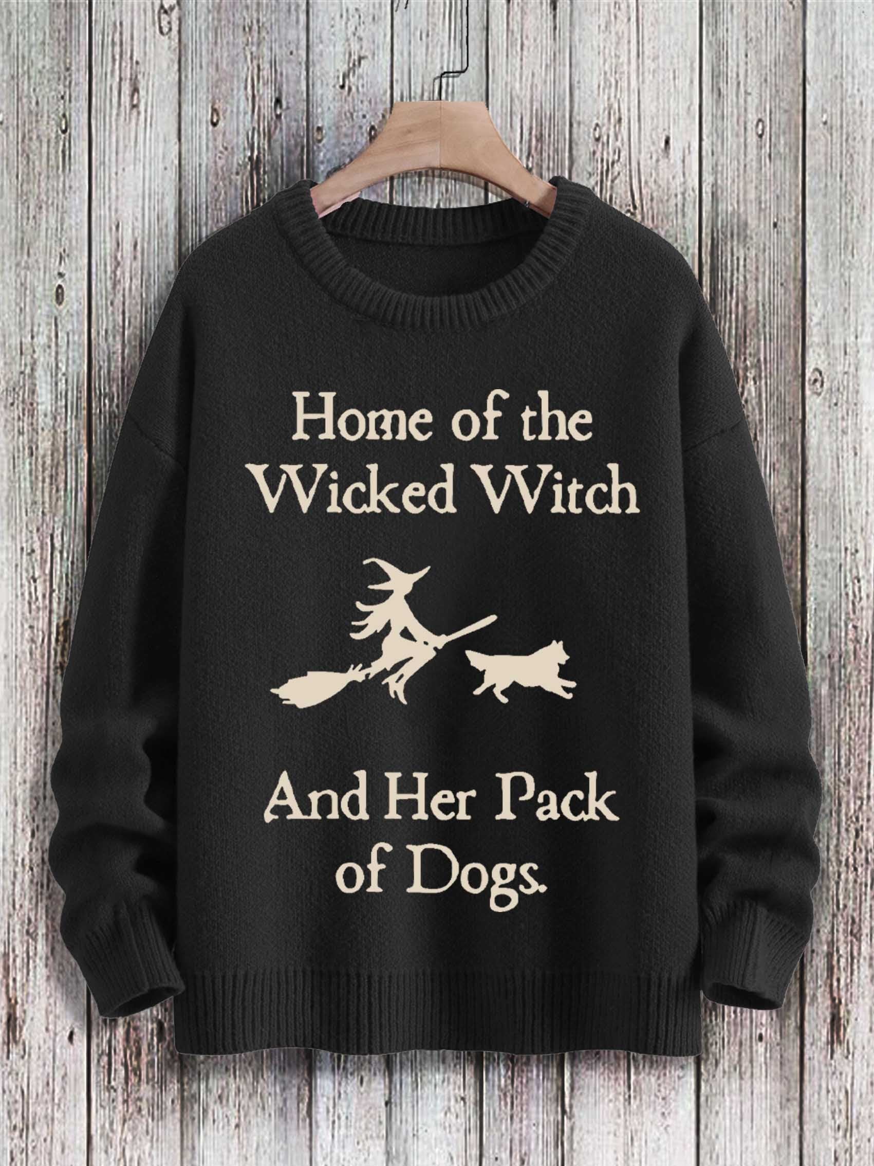 Home Of The Wicked Witch And Her Pack Of Dogs Print Casual Knit Pullover Sweater