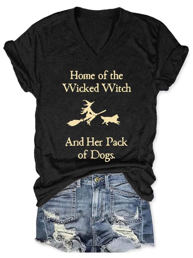 Home Of The Wicked Witch And Her Pack Of Dogs Print Casual T-shirt