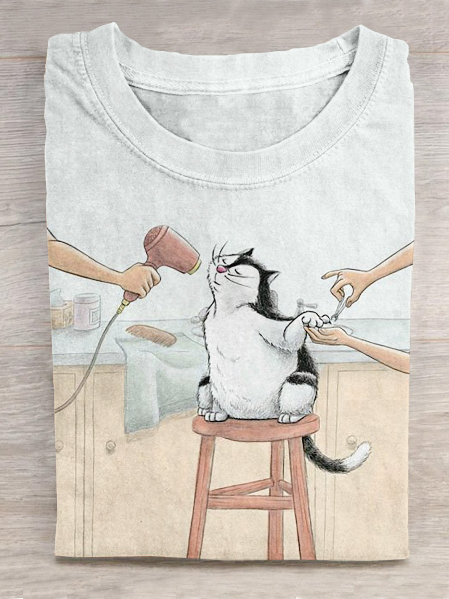 Kitten In The Salon Illustration Printed T-shirt