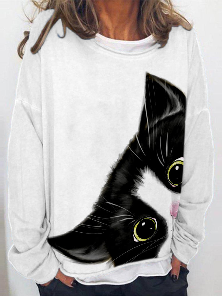 Lovely Cat Print Oversized Comfy Sweatshirt