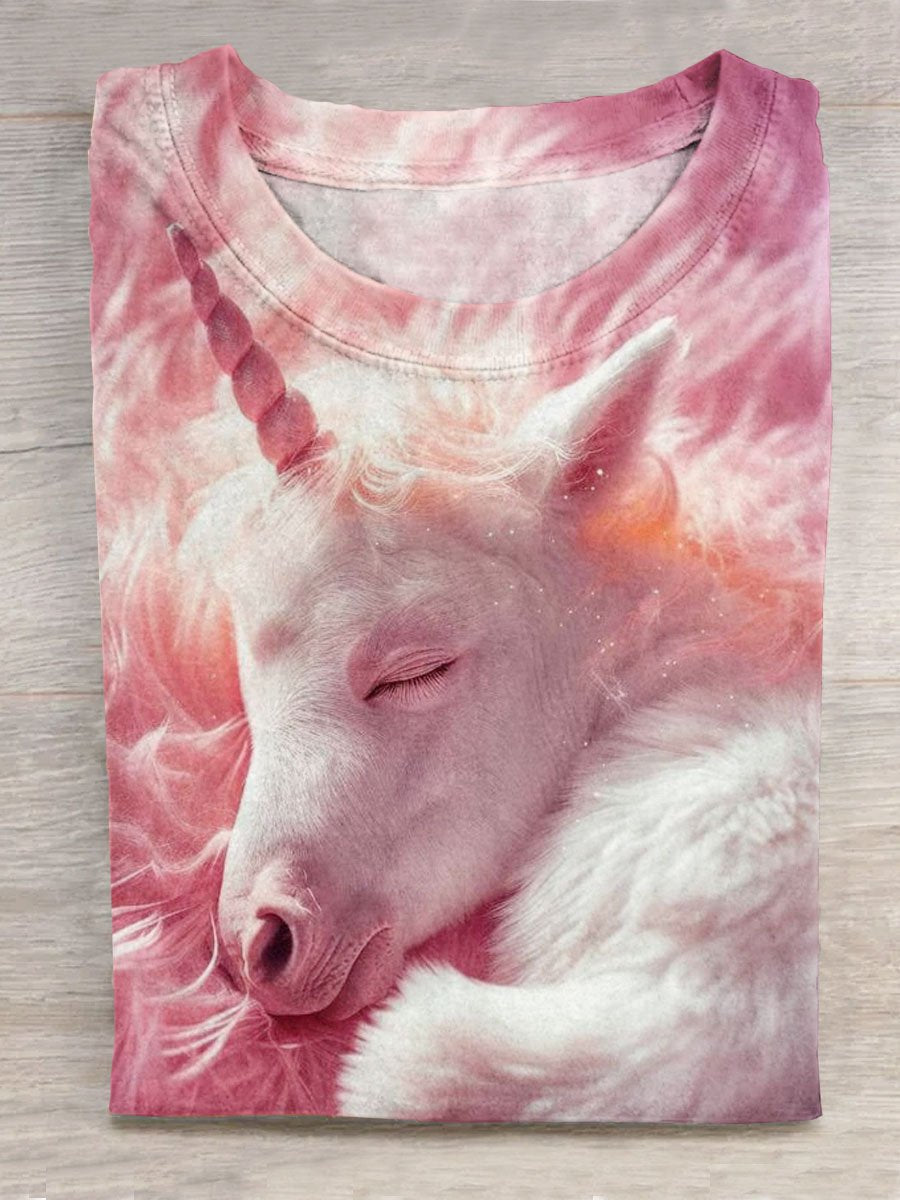 Lovely Pink Unicorn Art Pattern Print Casual T-shirt