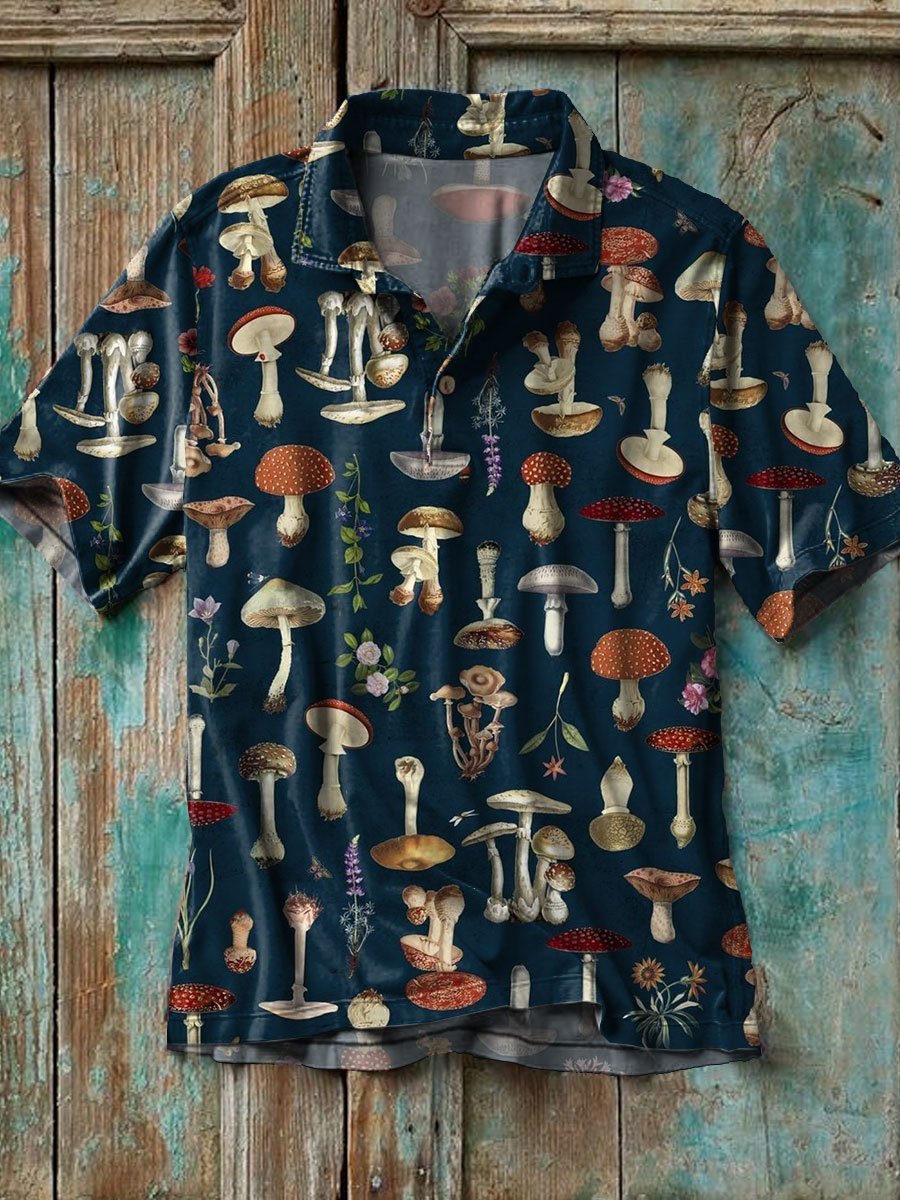 Men‘s Mushroom Art Print Casual Short Sleeve Polo Shirt