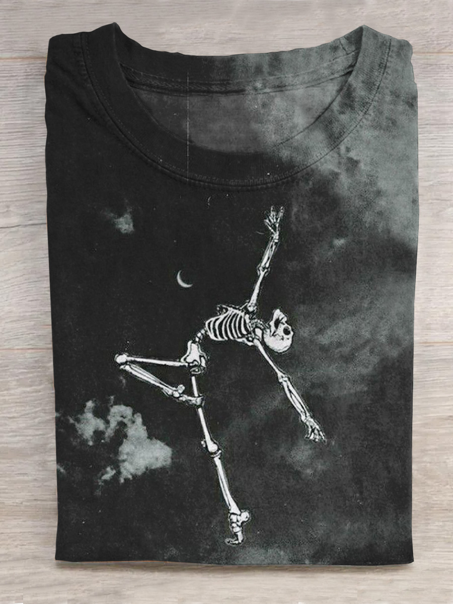 Midnight Skeleton Ballet Dancer Art Printed T-shirt