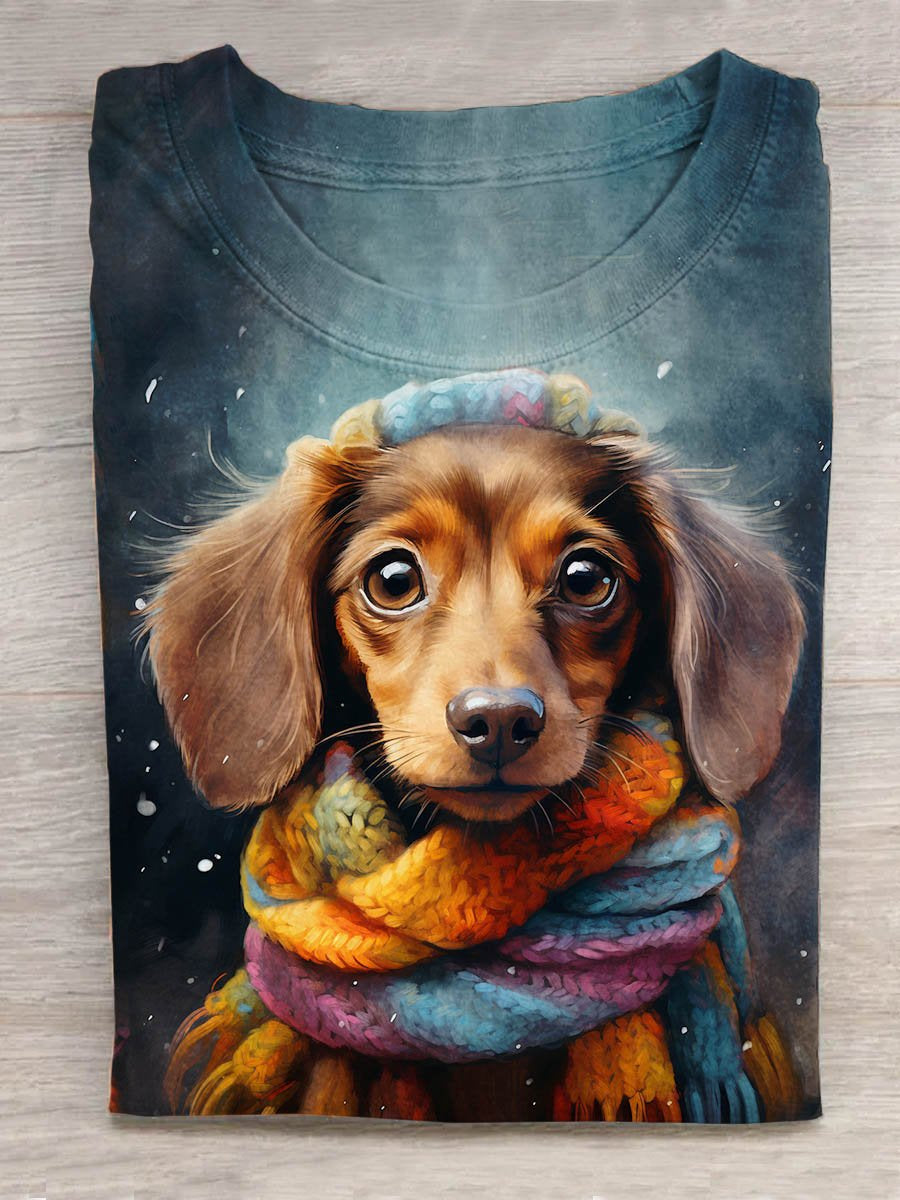 Rainbow Scarf Dachshund Dog Animal Art Print Design T-shirt