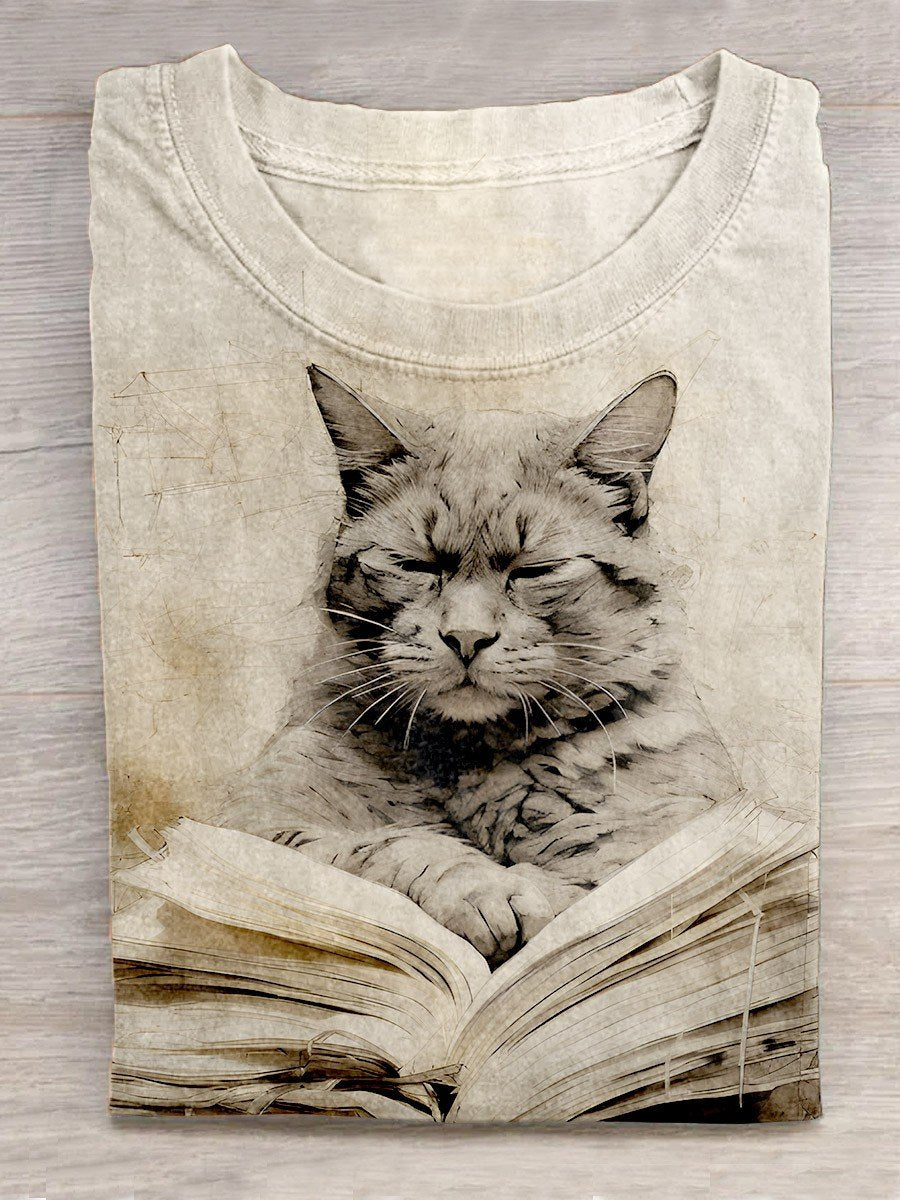 Reading And Pensive Cat Creative Design T-shirt