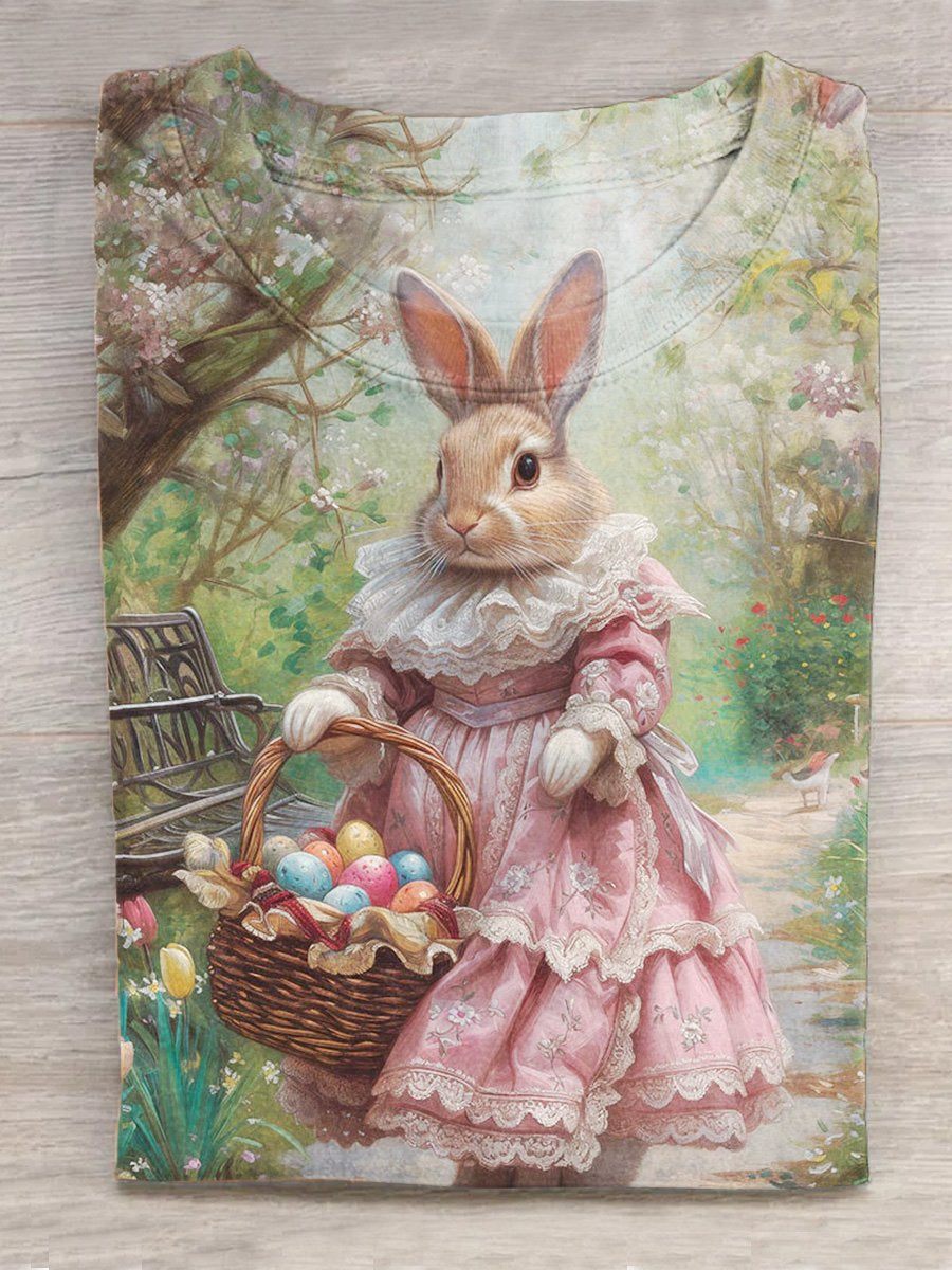 Retro Bunny Art Print Casual T-Shirt