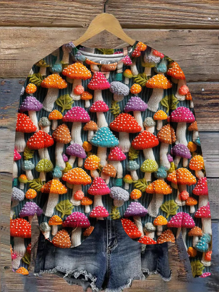 Retro Christmas Gift Christmas Mushroom Art Design Print Casual Sweatshirt