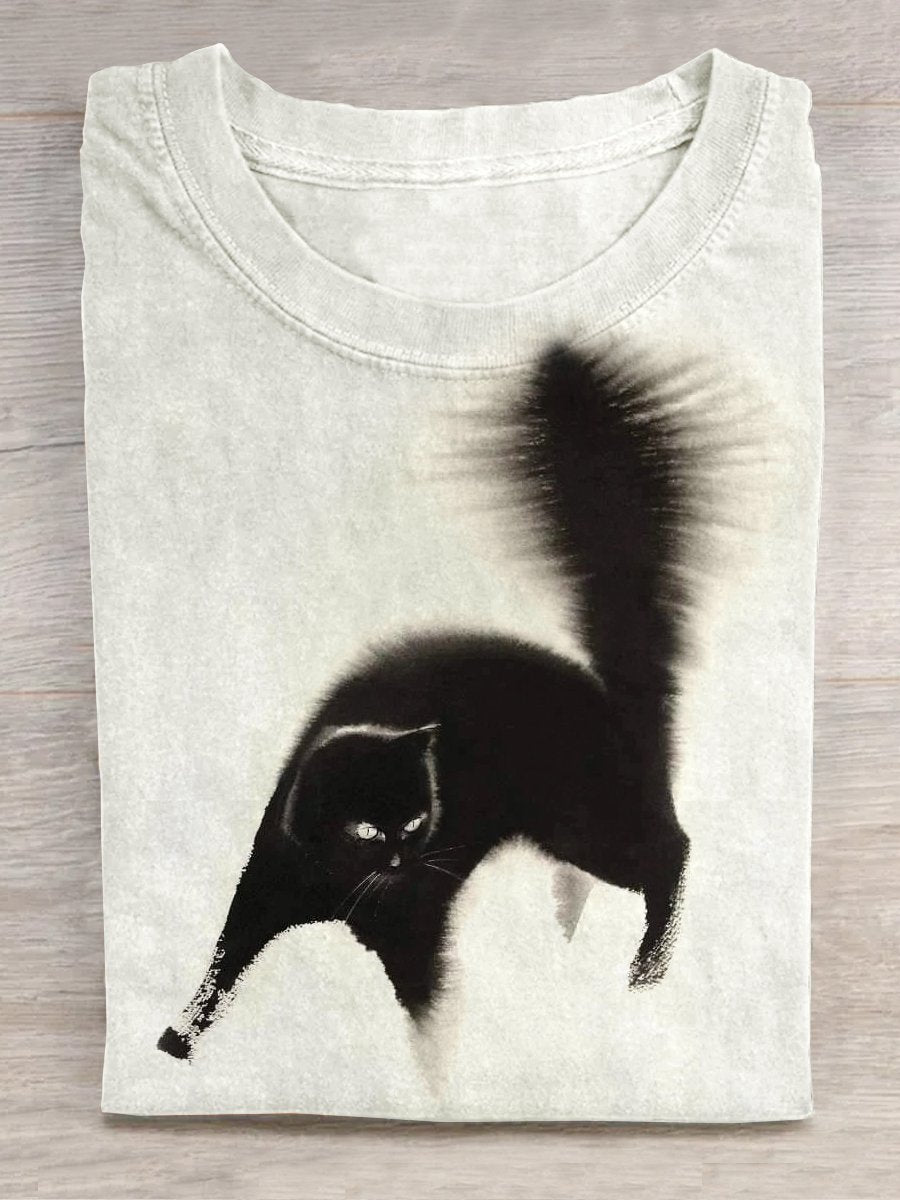 Retro Cute Cat Art Funny Casual Print T-shirt