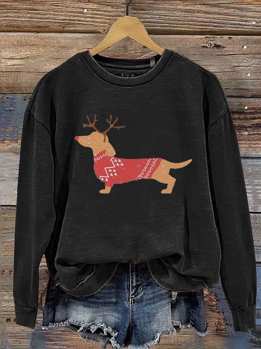 Simple Dachshund Christmas Print Casual Sweatshirt