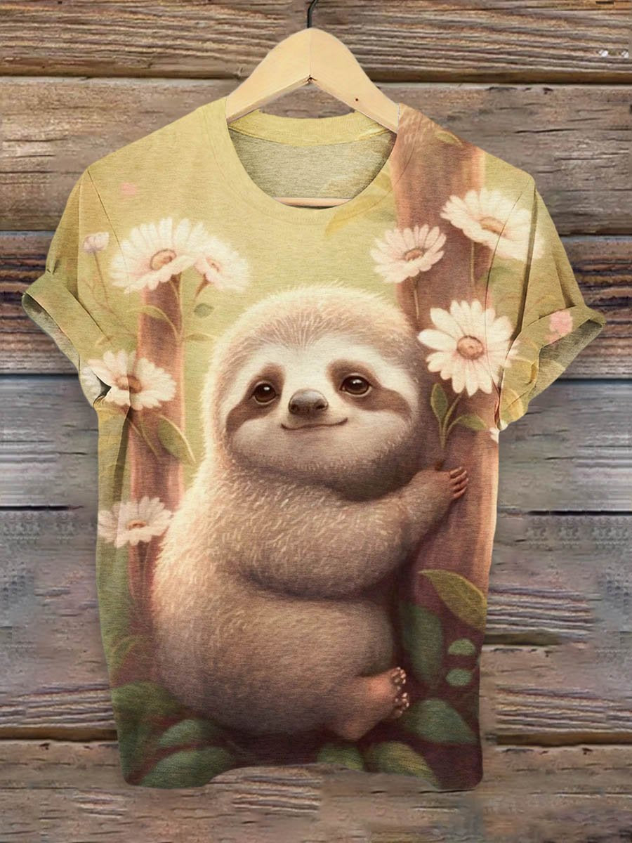 Sloth Flower Art Pattern Print T-shirt