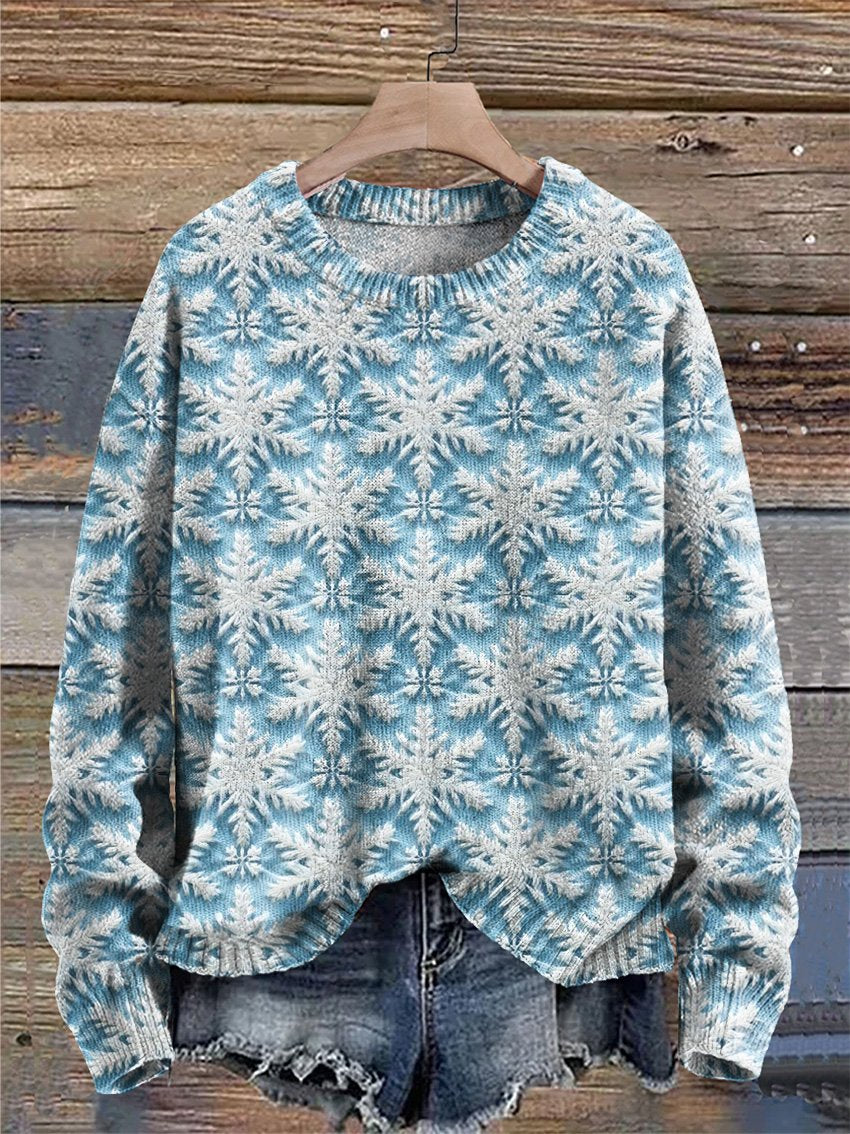 Snowflakes Snowy Christmas Winter Christmas Print Knit Pullover Sweater