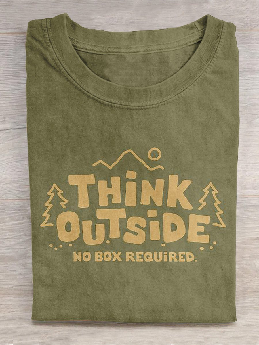"Think Outside, No Box Required" Funny Adventurous Outdoor Graphic Printed T-shirt