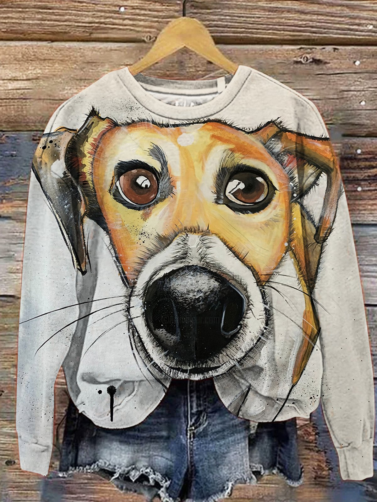 Unisex cute dog print crew neck long sleeve sweatshirt
