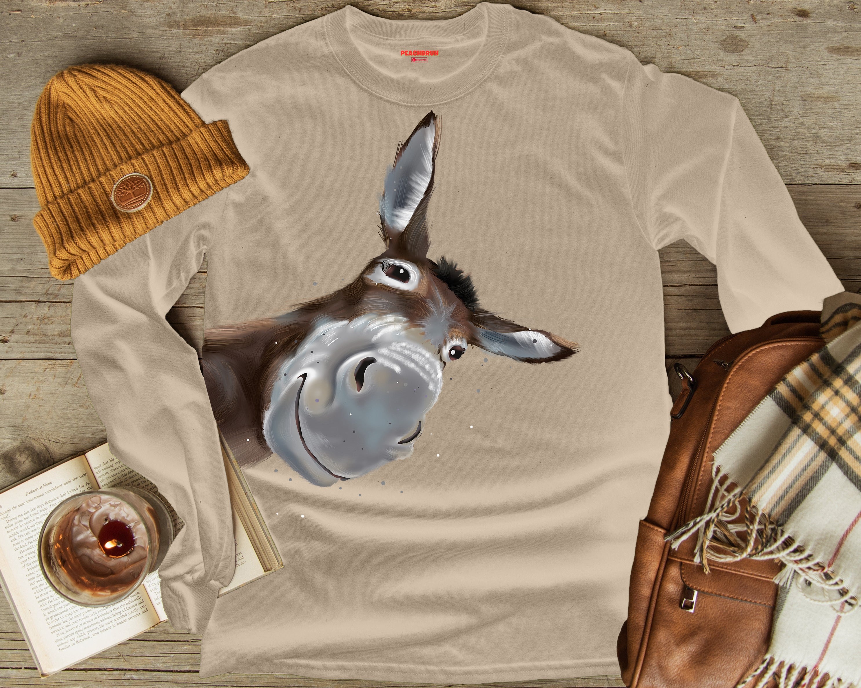 Unisex Cute Donkey Art Printed Long Sleeve Shirt