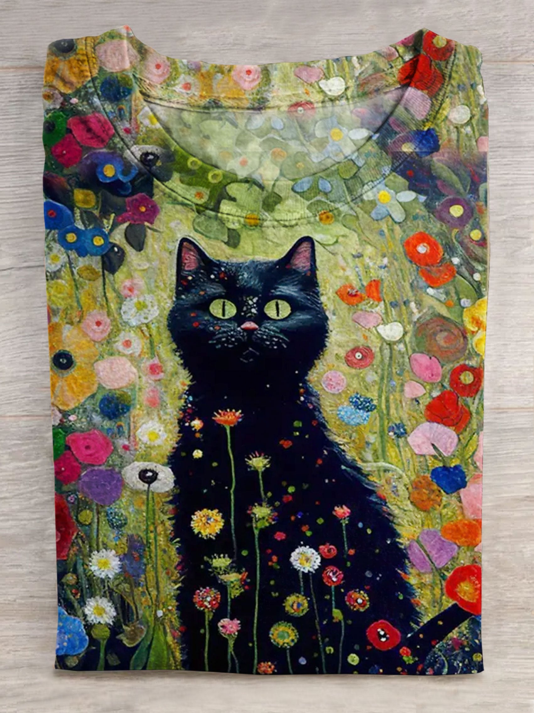 Unisex Cute Funny Black Cat Flower Art Print Casual T-shirt
