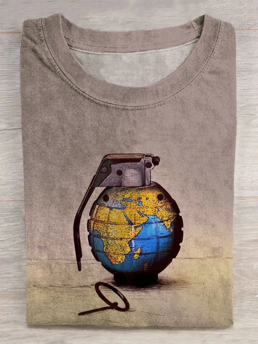 Unisex Earth Grenade Abstract Print T-Shirt
