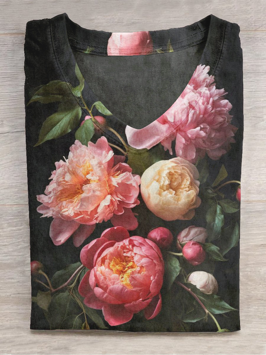 Unisex Floral Art Print V-Neck Short Sleeve T-Shirt