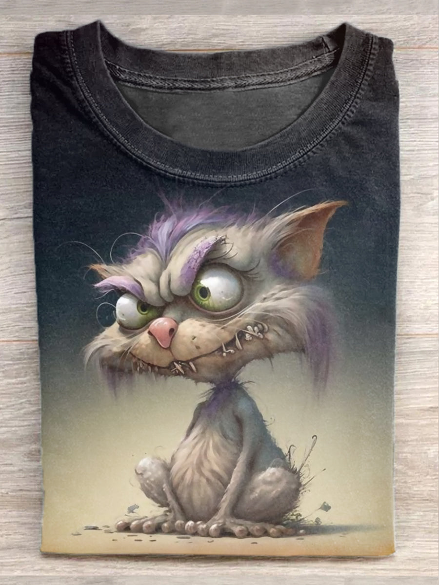 Unisex Funny Cat Art Illustration Printed Casual Short-Sleeved T-Shirt