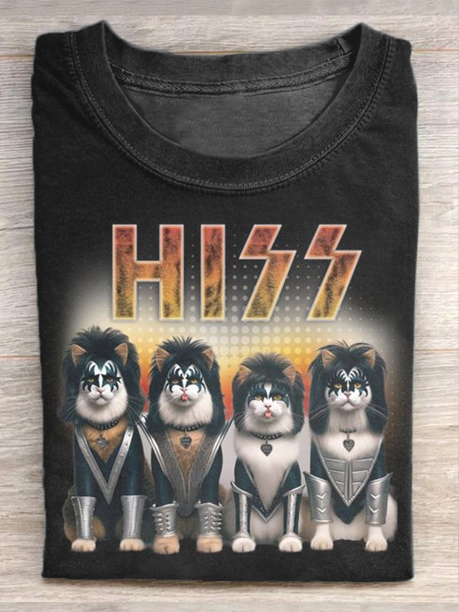 Unisex Funny Cat Rock Music Print Casual Short Sleeve T-Shirt