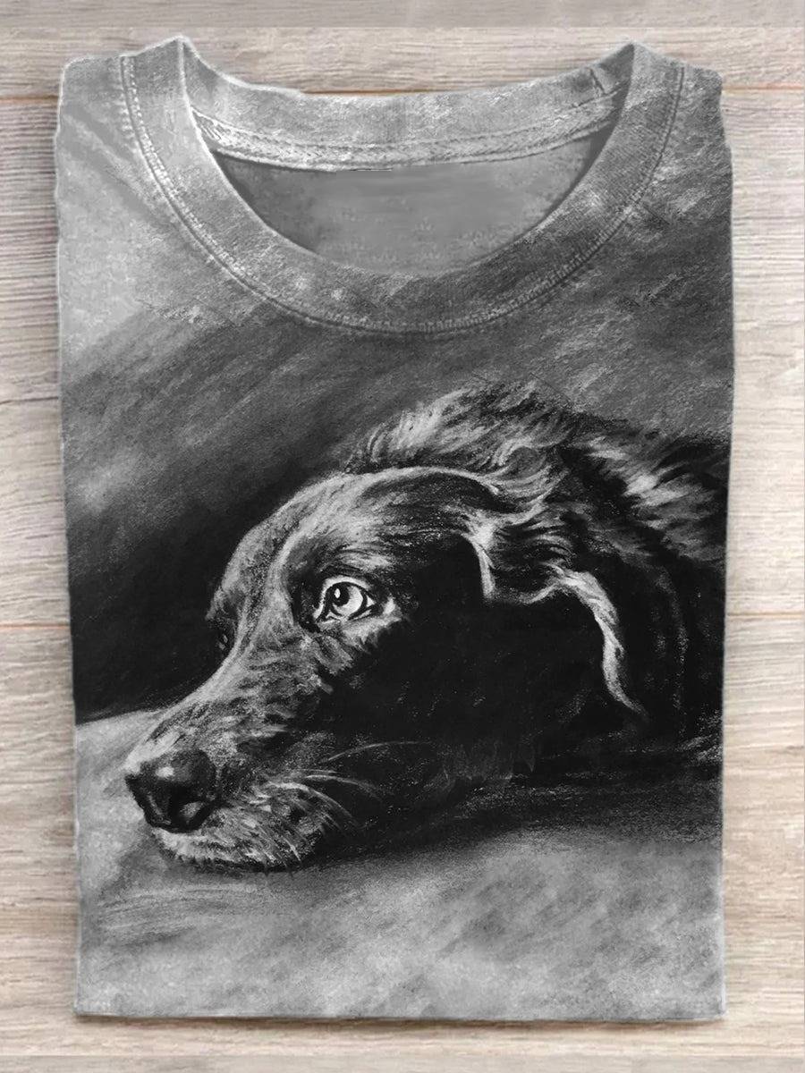 Unisex Funny Dog Illustration Print Casual Short Sleeve T-Shirt