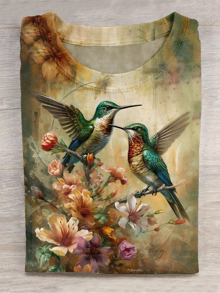 Unisex Hummingbird Art Print Crew Neck Short Sleeve T-Shirt