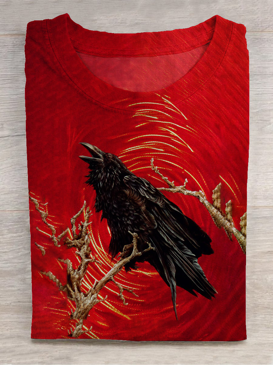 Unisex Raven Art Print Crew Neck Short Sleeve T-Shirt